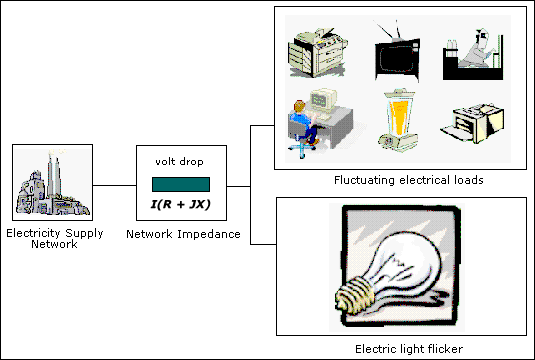 راه اندازی موتورهای بزرگ یا کارکرد انواع دیگری از بارها نظیر دستگاه های جوش و کوره های قوس الکتریک با تغییراتی که مقدار موثر ولتاژ ایجاد می کنند. و به آن اصطلاحاً فلیکر ولتاژ اطلاق می گردد، به گونه دیگری نیز میتوانند باعث ایجاد اعوجاج شوند. طبق استاندارد IEEE-100 1997 فلیکر ولتاژ اثر نوسان نور می باشد. و در زمانی مشاهده می شود، که تغییر فرکانس در رنج چند هرتز باشد از آنجائیکه فلیکر لامپ بسیار به نوسان ولتاژ منبع بستگی دارد، معمولا به نوسان ولتاژ، فلیکر ولتاژ گفته می شود. فلیکر ولتاژ به علت تغییر ناگهانی در ولتاژ منبع ایجاد می شود. تغییر ناگهانی در ولتاژ منبع به دلیل به کارگیری بارهای بزرگ در سیستم قدرت یا به وسیله عملکرد تجهیزاتی با بارگذاری زیاد و لحظه ای می باشد. مشخصه فلیکر به دو دسته فلیکر دوره ای و فلیکر غیردوره ای تقسیم می شود.